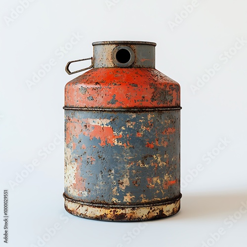 A rusty old milk can with a handle, a relic of farm life, aged with stories untold.
