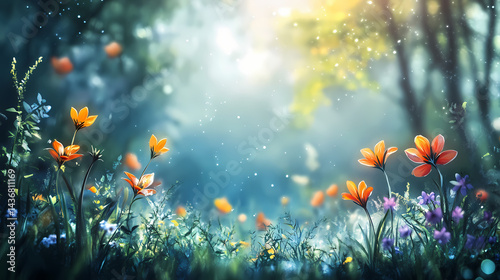 A sacred valley where flowers bloom with each heartbeat of the earth, their petals shining like miniature stars. Petal Pulse. Illustration