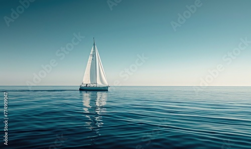 A sailboat gliding across the calm waters of the ocean