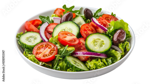 A salad with tomatoes, cucumbers, and onions