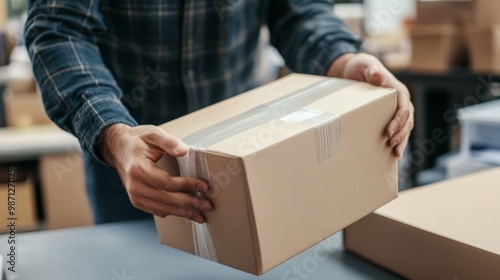 a sales representative in the packaging industry who has a meeting with a customer. they are discussing a prototype box that has been developed for th, AI Generative