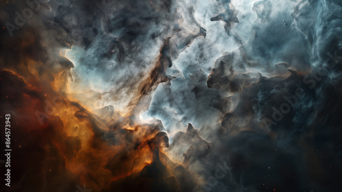 A satellite capturing detailed images of a large nebula, revealing intricate patterns and structures