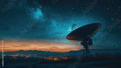 A satellite dish in a remote area under a starry sky, representing global internet reach.