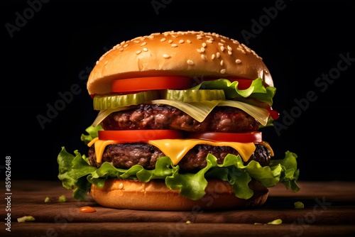 A Savory Cheeseburger Stack Featuring Layers of Flavor on a Dark Background