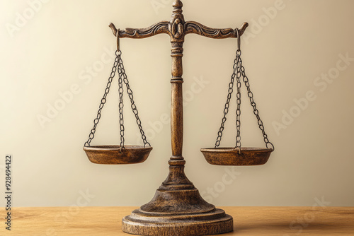 A scale with one side heavily weighted, isolated on a pastel beige background, representing the imbalance of power,