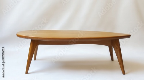 A Scandinavian-style coffee table with a natural oak finish and tapered legs, perfectly displayed on a clean white backdrop.