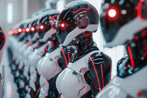 A scene that merges the Renaissance art style with futuristic elements, featuring cyborgs in classic poses and attire