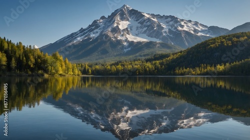 A scenic view of a mountain and a lake reflecting the mountain's image