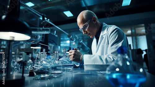 A scientist in a state-of-the-art laboratory. Cutting-edge research. Complex equipment and intense focus on a groundbreaking experiment. Generative AI