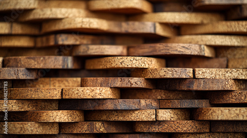 A seamless arrangement of cork wall tiles, symbolizing eco-friendly soundproofing and acoustic insulation, creating a sleek and modern backdrop for contemporary interiors