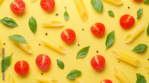 A seamless background of Penne Lisce pasta, arranged in a uniform pattern, showcasing the smooth texture and classic shape, perfect for food-related themes, Italian cuisine, and culinary design.