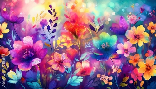 A seamless floral pattern featuring watercolor-drawn abstract flowers and plants. The soft, flowing design blends vibrant blooms with delicate, artistic brushstrokes for a graceful look.