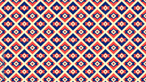 A seamless pattern of alternating red and blue diamonds with center star on a light yellow background