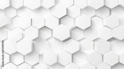 A seamless pattern of white hexagons creates a modern, minimalist background.