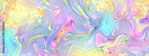 A seamless pattern with holographic liquid in a pastel rainbow, their colors swirling and blending to create an ethereal atmosphere.