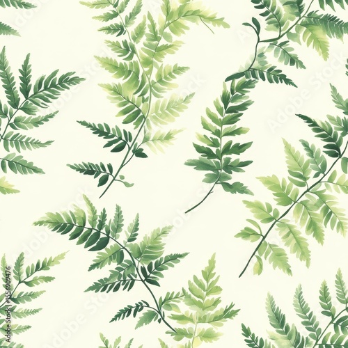 A seamless pattern with realistic mini fern leaves, mesmerizing and vibrant, minimalist design, soft colors