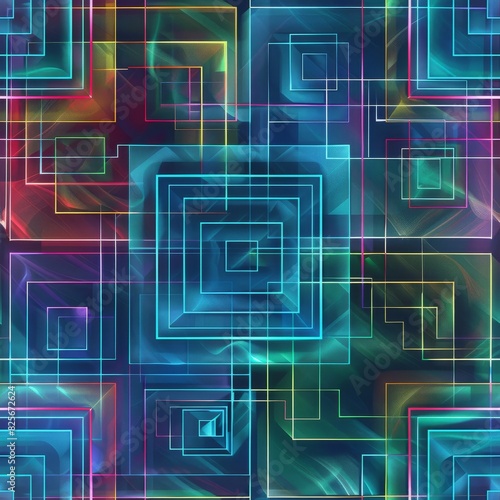 A seamless tile of geometric shapes of neon colors in a fun pattern.