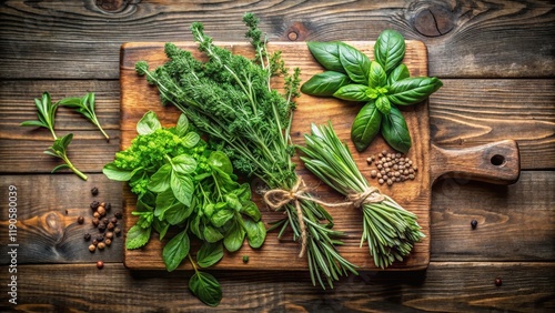 A selection of fresh herbs such as basil