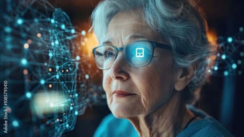 A senior using a virtual private network (VPN) while browsing the internet, with a clear icon indicating a secure connection on the screen.