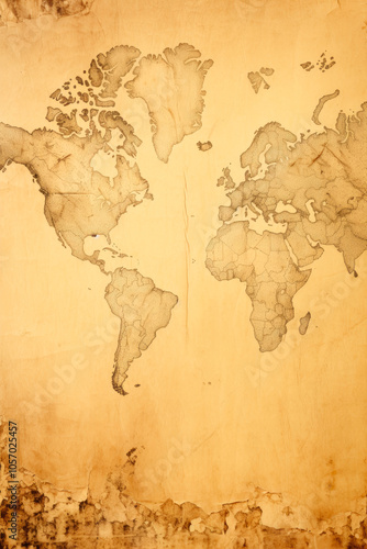 A sepia-tinted world map offers detailed borders and classic design, capturing the essence of historical cartography and adventure.