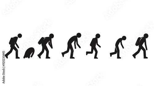 A sequence illustrating the evolution of human-like figures with backpacks.