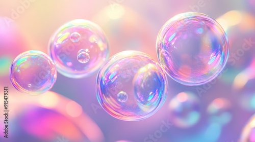 A serene abstract design featuring floating soap bubbles with soft, iridescent colors and gentle lighting, creating a tranquil ambiance.
