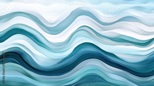 A serene abstract design with soft, flowing gradients in deep teal, aqua, and pale white shades, reminiscent of calm sea waves. The gentle curves evoke tranquility and the smooth transition of water