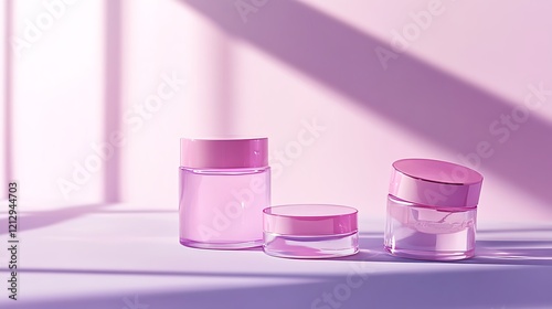 A serene arrangement of cosmetic jars on a pastel lavender surface with soft shadows