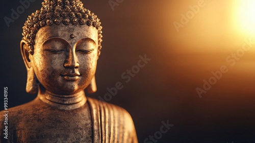 A serene Buddha statue radiates tranquility, capturing the essence of peace, meditation, and spiritual reflection in soft lighting.