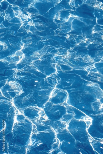 A serene close-up of clear blue water, reflecting sunlight and creating intricate patterns and ripples.