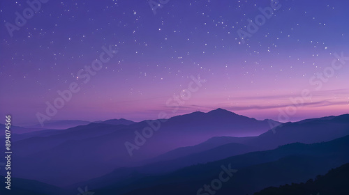 A serene evening over a mountain range with stars beginning to twinkle in the purple sky