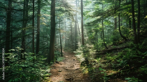 A serene forest path illuminated by soft sunlight, inviting exploration and connection with nature.