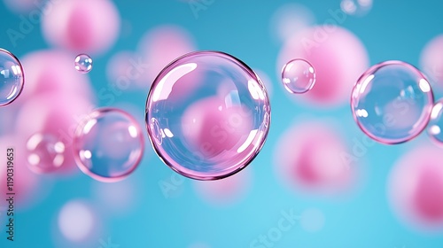 A serene image of pink bubbles floating against a soft blue background, creating a whimsical and dreamy atmosphere.