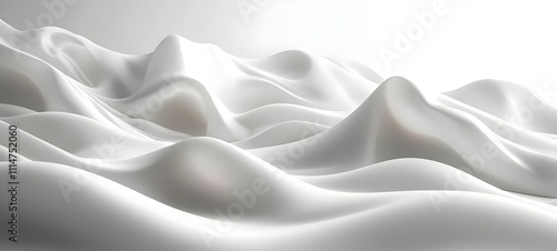 A serene landscape of soft, flowing white waves creates a calming atmosphere, suggesting tranquility and purity in a minimalist setting.