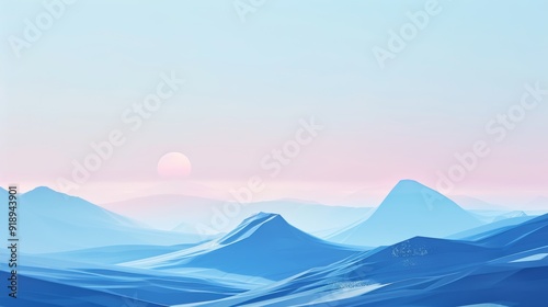 A Serene Landscape Unfolds Under a Pale Pink Sunrise Casting a Gentle Light Over Rolling Blue Hills