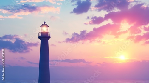 A serene lighthouse standing tall against a colorful sunset, creating a tranquil and inspiring coastal scene.