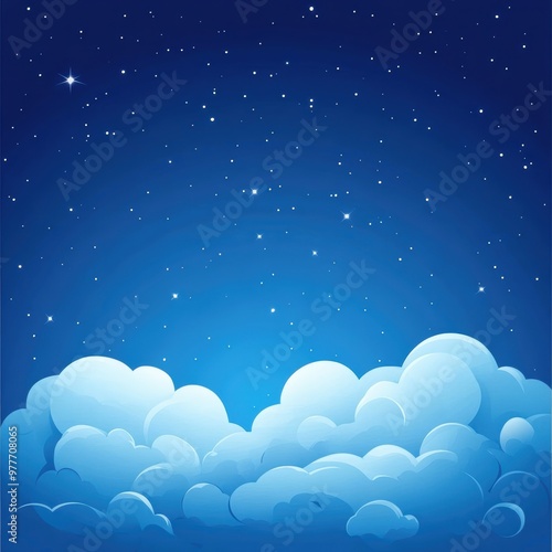 A serene night sky featuring soft clouds and twinkling stars against a deep blue backdrop, perfect for peaceful imagery.
