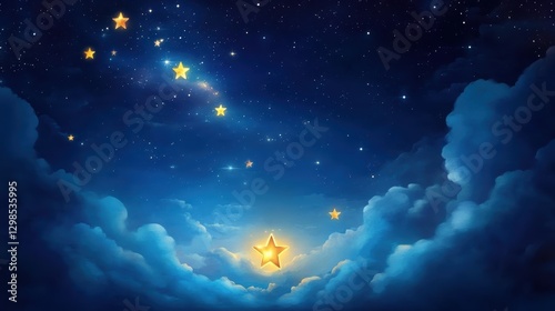 A serene nighttime sky filled with stars and soft clouds, perfect for conveying themes of creativity, inspiration, or serenity, Ideal for use in children's books, meditation guides