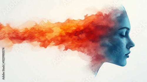 A serene profile of a woman's face blends with vibrant, swirling colors, representing creativity and emotional expression.