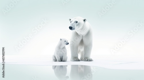 a serene scene of a modern living room with a beautifully decorated Christmas tree. Realistic polar bear figurines are placed under the tree, surrounded by minimalistic ornaments or soft, white lights