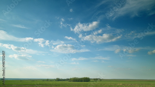 A Serene Sky Spanning Over Lush Green Fields, Casting a Bright and Calming Atmosphere
