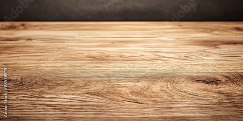 A serene, smooth, three dimensional table surface made of wood serves as a backdrop. This wooden background features an empty oak texture, ideal for copy space or displays.