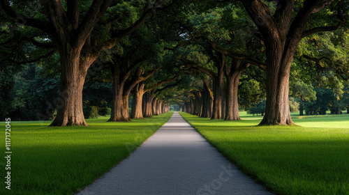 A serene tree-lined path inviting peaceful strolls through lush greenery.