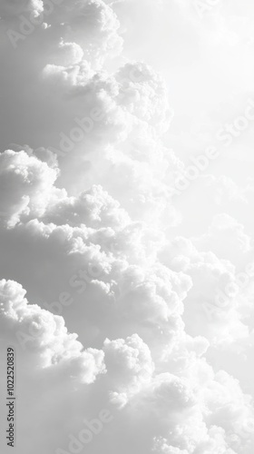 A serene view of fluffy white clouds against a bright background, evoking tranquility.