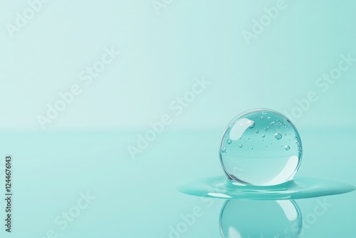 A serene water droplet sits gracefully on a smooth surface, showcasing tranquility and purity against a soft, calming background.