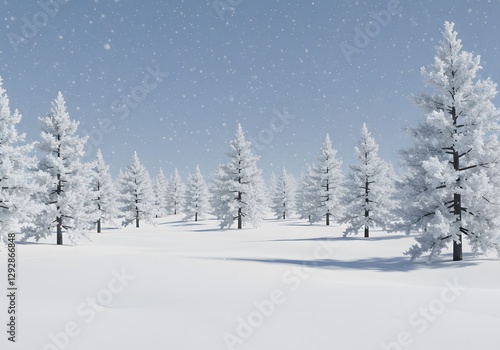 A Serene Winter Landscape Featuring Snow-Covered Trees Under a Clear Blue Sky