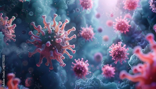 A series of 3D illustrations demonstrating how enzymebased therapies can disrupt viral replication cycles