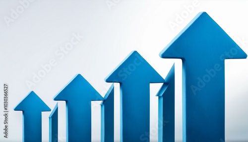 A series of blue upward arrows on a white background, representing the concept of growth or success