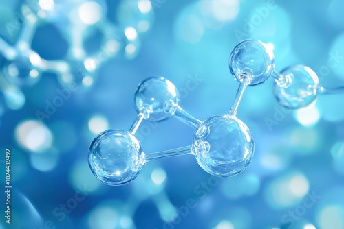 A series of connected molecular structures floats in a vibrant blue background