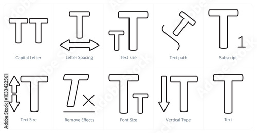 A set of 10 editing tools icons as capital letter, letter spacing, text size